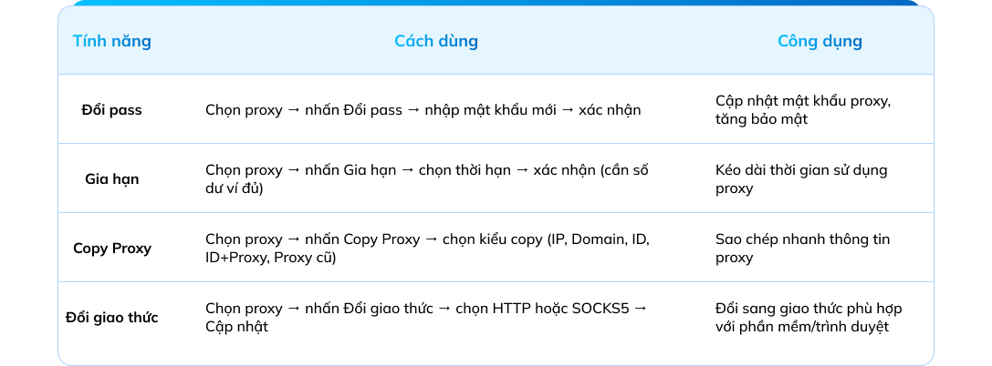Còn với proxy domain, bạn chỉ cần nhập domain một lần duy nhất. Hệ thống sẽ tự động trỏ tên miền này về IP mới mỗi khi IP bị thay đổi. Nên để đảm bảo kết nối ổn định và tiết kiệm thời gian cấu hình, hãy ưu tiên sử dụng Proxy Domain.