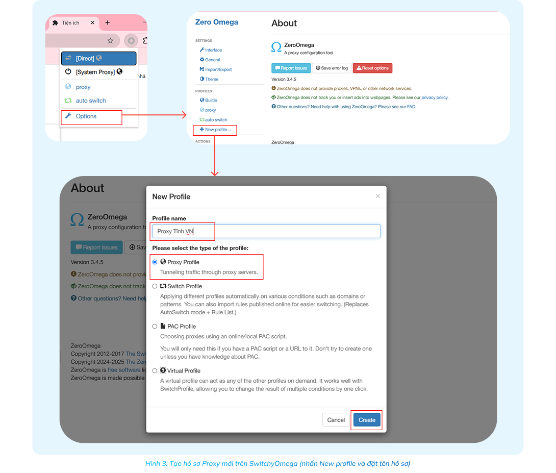 Bước 2: Tạo cấu hình proxy mới