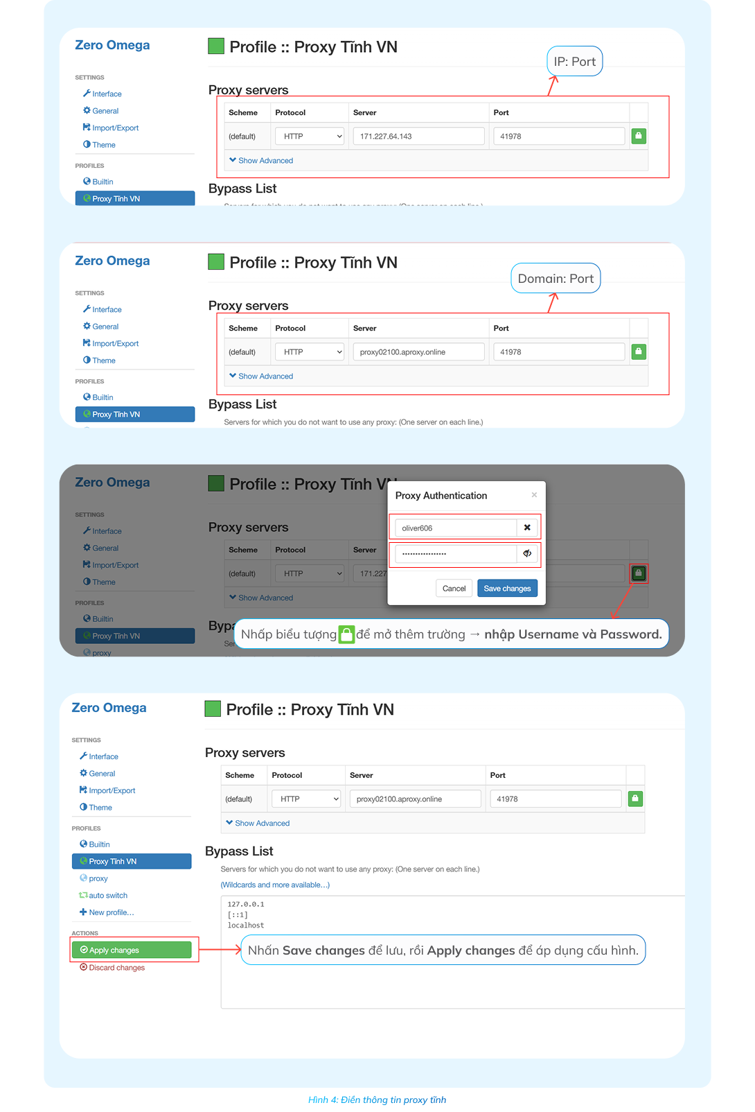 Bước 3: Nhập thông tin proxy tĩnh