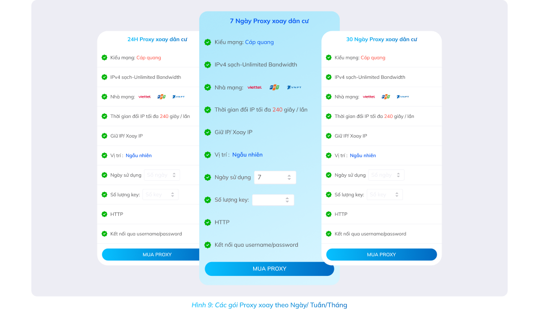 Đăng nhập và chọn mua gói Proxy xoay theo Ngày/ Tuần/Tháng
