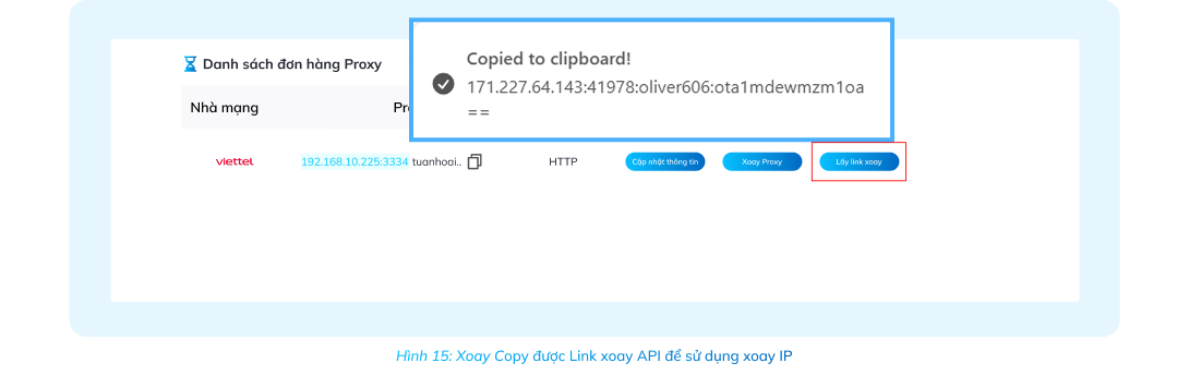 Sau đó sẽ hiện link API như hình nghĩa là bạn đã copy được Link xoay API để sử dụng xoay IP